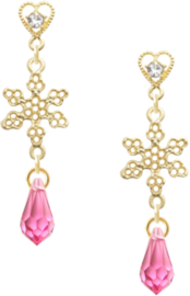 愛らしく輝くラインストーン付ハートチタンピアス。スワロフスキーのローズとスカシスノーパーツが、女性らしい華やかさを演出します。耳元で揺れる小さなハートが、周りの視線を引き付けること間違いなし。