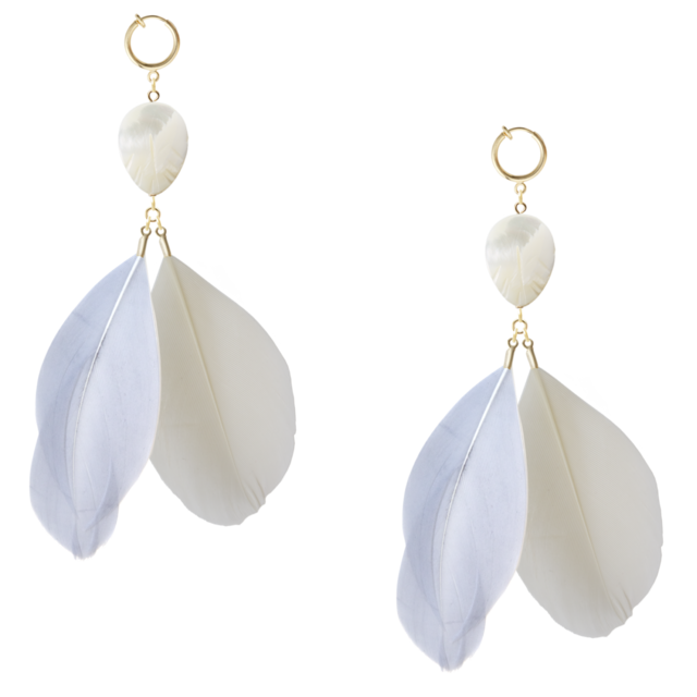 こちらは、ガチョウのはねを用いたシェルホワイトのリーフイヤリングフープです。アレルギーの方にも安心しておしゃれを楽しむことができます!