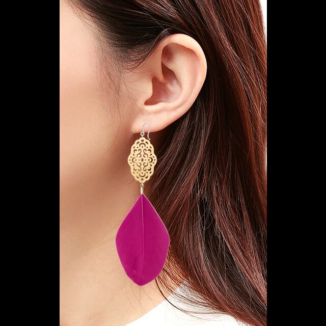 DREAM2は、繊細なダマスク柄が美しい樹脂フックピアスです。アレルギー対応の安心素材で、ピアスの外側はガチョウの形をしたアクセントが付いています。パープルカラーの華やかさで、女性らしい装いを引き立てます。