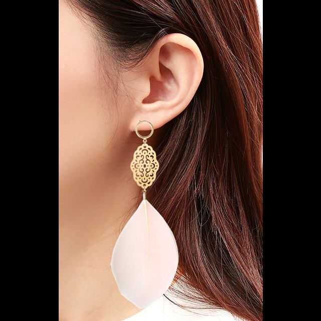 純粋な恋(イヤリングフープ)は、ダマスクスカシプレートを使用し、ガチョウモチーフのデザインが特徴です。ライトピンクの色合いが優しさを与え、身に着けることでふんわりとした可愛らしさをプラスします。普段使いから特別な日まで、さまざまなシーンで活躍できるアイテムです。