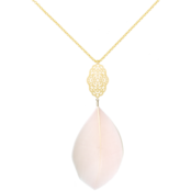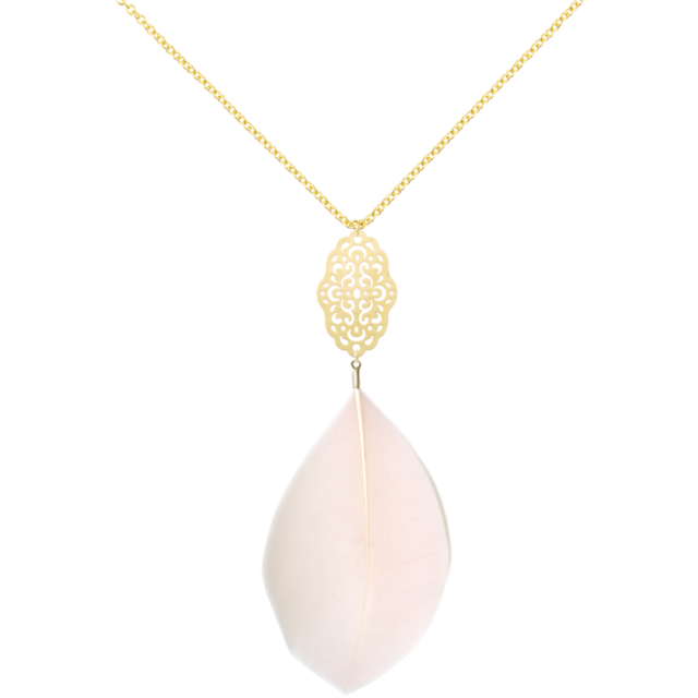「純粋な恋 5」は、ダマスクスカシプレートとガチョウのチャームが特徴的なアクセサリーです。ライトピンクの色合いが心温まる印象を与え、潤いを感じさせる存在感があります。チェーンの滑らかな流れが、デコルテを美しく演出し、特別な日や日常使いにもぴったりなアイテムとなっております。