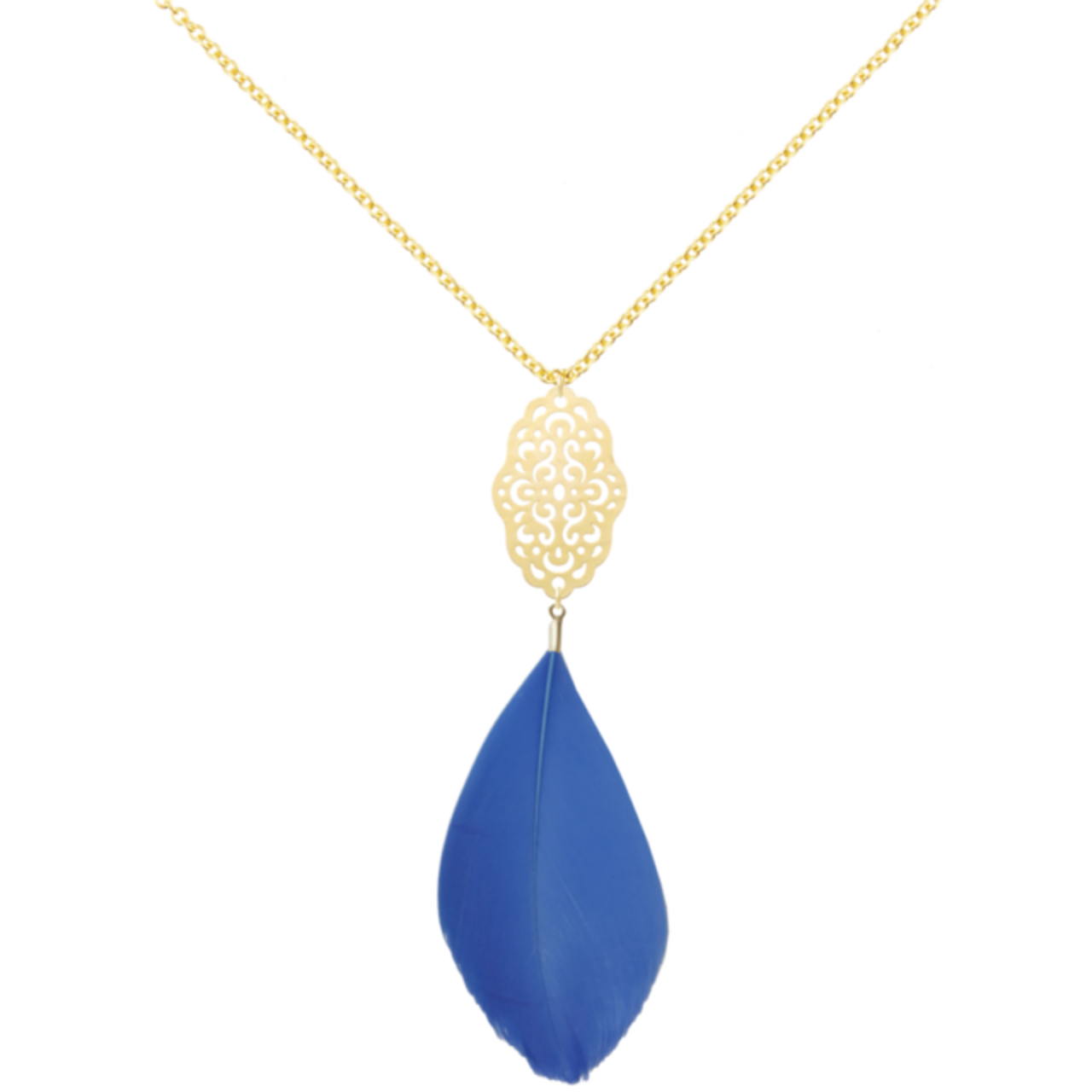 このネックレスは、職人による丹念な手作業で作られており、高い品質と美しい仕上がりが特徴です。特に、ダマスクスカシプレートの繊細なデザインと、あずきプレーンチェーンが、あなたの首元を華やかに演出します。ブルーのガチョウの羽が放つ優雅さは、まるで空を舞うような軽やかさを感じさせてくれます。