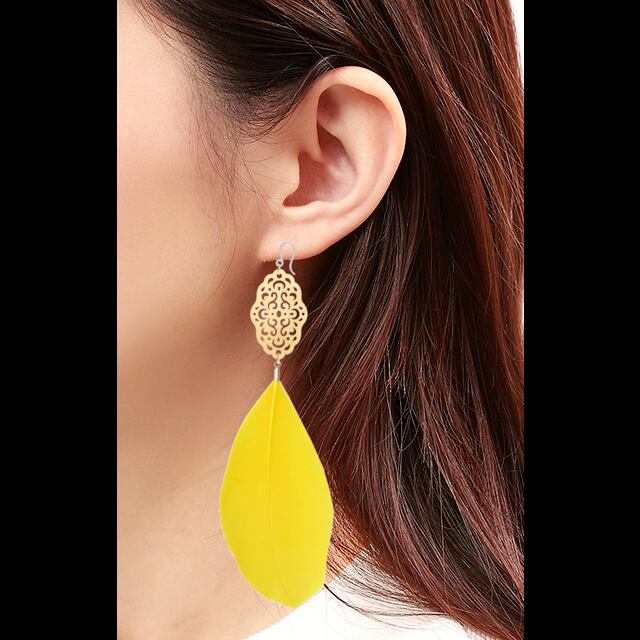 ダマスクデザインのスカシプレートとガチョウのモチーフが特徴のこのピアスは、マスタードカラーの洗練されたデザインが耳元を華やかに演出します。優雅でありながらも、遊び心のあるデザインで、あらゆるスタイルにマッチします!