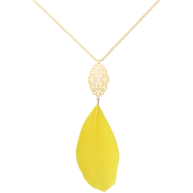 ダマスクスカシプレートとガチョウのデザインが特徴的で、マスタードカラーが周囲を明るく彩ります。このネックレスは、シンプルながらも存在感があり、どんなスタイルにも上品さを加えてくれるアイテムです。