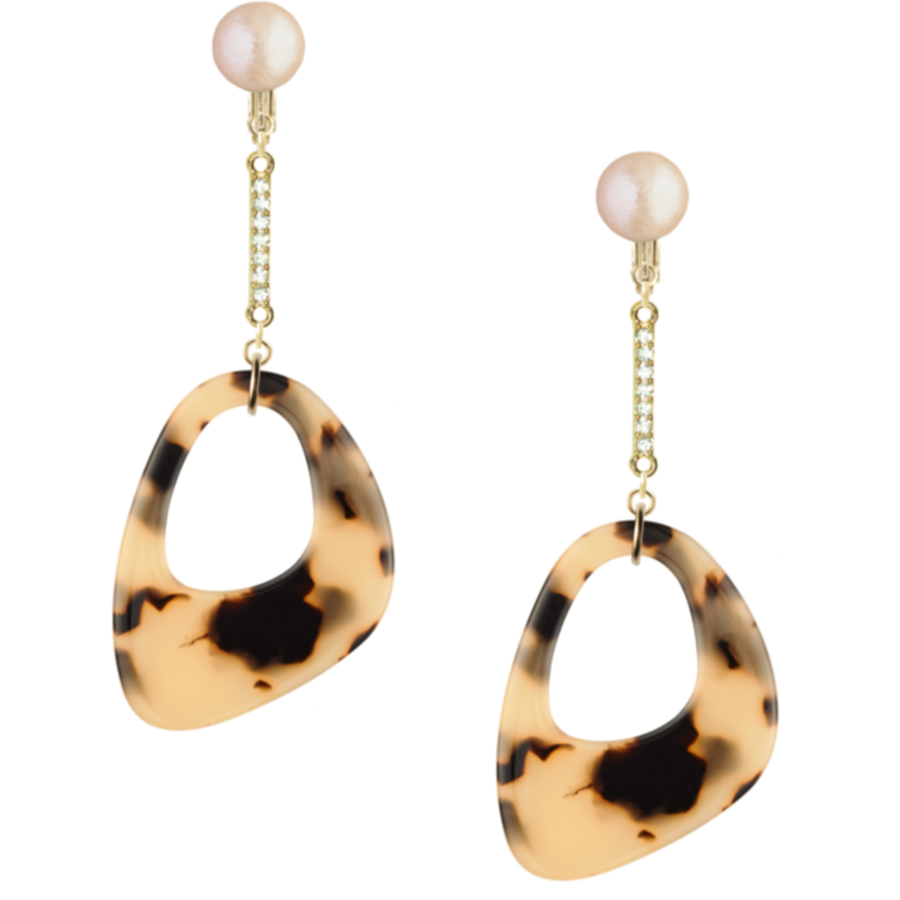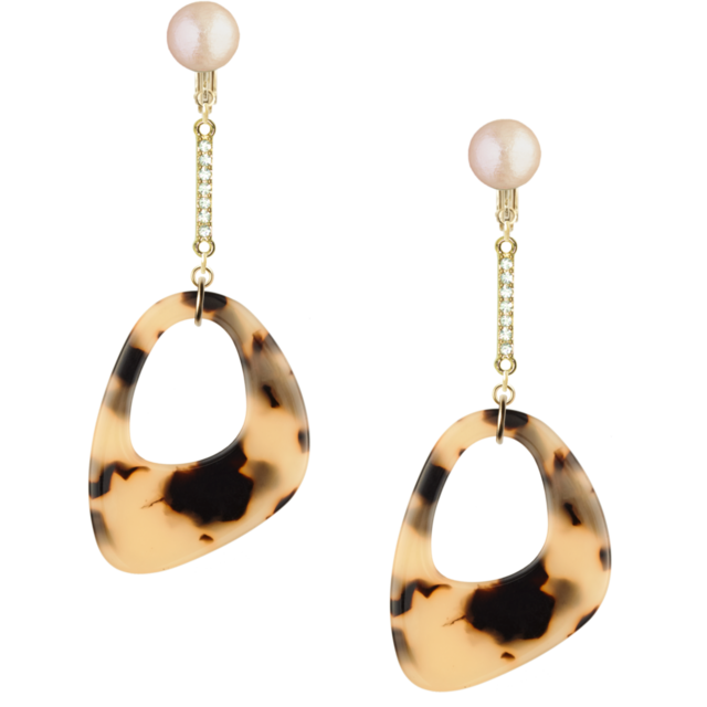 こちらは、ネジバネイヤリングです。べっ甲風のオーバルアクリルが華やかさを引き立て、安心してオシャレを楽しめるアイテムです!
