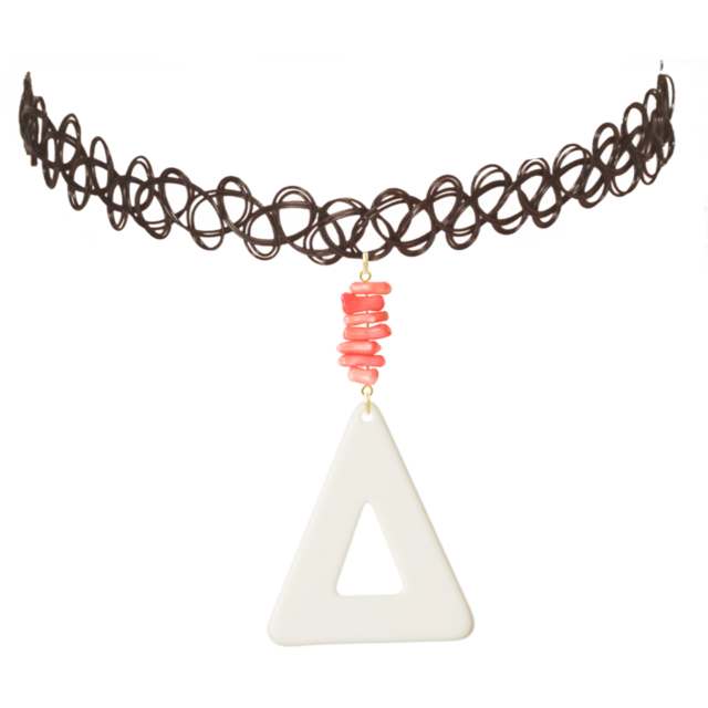 コーラルの珊瑚とホワイトの三角パーツを使用したシンプルで上品なデザインです。