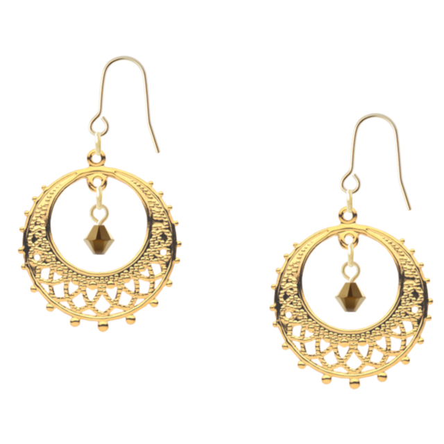 Gorgeousという名前通り、まさにゴージャスでエレガントな存在感を放つアクセサリーです。中間パーツには華やかなスワロフスキーが施され、ひし形のフォルムが大人の女性にぴったり。ゴージャスなドラドの金色が、パーティーや特別な場面での華やかさを引き立てます。