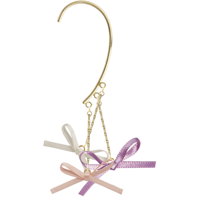 Ribbon 2は、冬や春の季節にピッタリな、キュートでスウィートなアイテムです。マットな質感のサテン地に、リボンやゴールドのアクセントが施された、ベビーピンクとピンクの華やかな色合いが特徴。イヤーカフとしても使えるデザインなので、パーティーシーンやクリスマスなどのイベントにも活躍します。