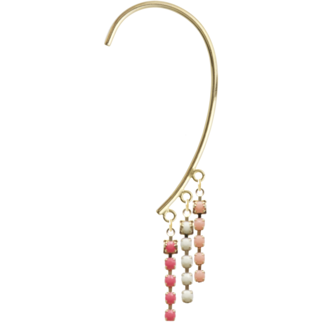 Color 7は、異なる色や形状がユニークなイヤーカフです。ピンクコーラルやオフホワイト、ゴールドなどのカラフルなパーツが贅沢に使用されており、存在感抜群のアクセサリーです。さりげなく耳元を飾りたい方にぴったりなデザインで、普段使いからパーティーシーンまで幅広く活躍してくれます。