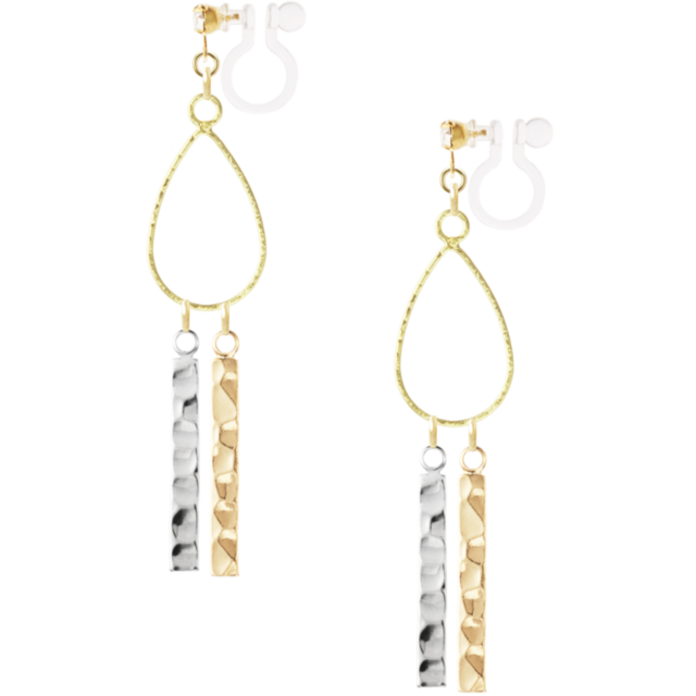 小ぶりでキュートなデザインが魅力の「輝くひとたち」イヤリング。真鍮素材を使用し、アレルギー対応の安心設計です。変形が施されたゴールドのパーツが、耳元を華やかに彩ります。中間パーツには和風のメタルパーツを使用し、大人の女性にもおすすめの一品です。